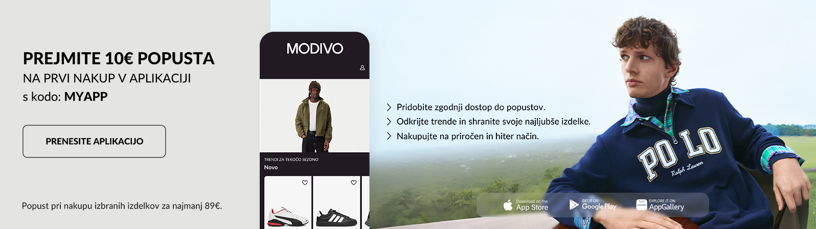 MODIVO je dinamična e-commerce platforma, ki revolucionira svet mode in ponuja več kot 300.000 izdelkov od 1700 priznanih blagovnih znamk. V ponudbi za moške najdete top blagovne znamke, kot so Polo Ralph Lauren, The North Face, Calvin Klein, Nike, Tommy Hilfiger, G-Star Raw, Lacoste, EA7 Emporio Armani, Boss, Reebok, Quiksilver in Guess – idealne za vsako priložnost.