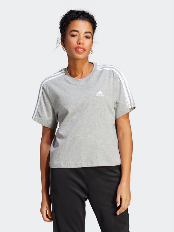 adidas Majica Essentials 3-Stripes Single Jersey Crop Top HR4916 Siva Loose Fit