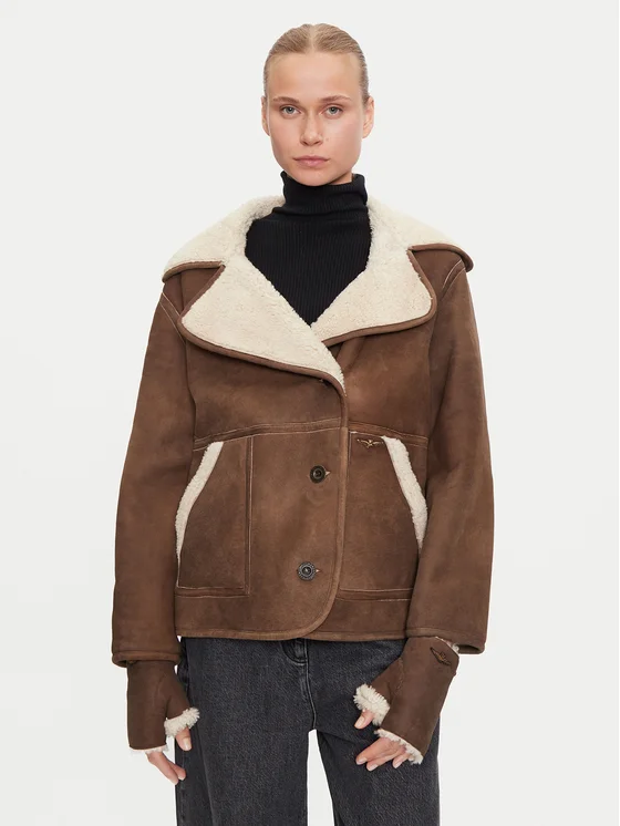 Aeronautica Militare Naravni kožuh 242PN2010D1893 Rjava Regular Fit