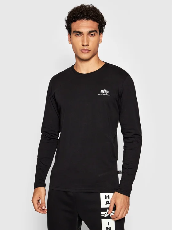 Alpha Industries Majica z dolgimi rokavi Basic Small Logo 198517 Črna Regular Fit