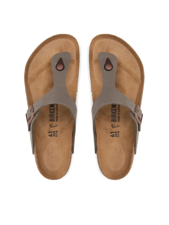 Japonke Birkenstock Gizeh so kvintesenca poletnega udobja. Ustvarjene so za ljudi, ki cenijo trpežnost in udobje. Njihov raven podplat zagotavlja stabilnost koraka, zaponka pa omogoča prilagoditev obutve nogi. Oblikovani vložek in mehak zgornji del zagotavljata neprimerljivo udobje. To je idealna izbira, če iščeš kombinacijo klasičnega sloga in praktičnosti. Birkenstock "Gizeh" so čevlji, ki bodo zadovoljili tudi najbolj zahtevne uporabnike.