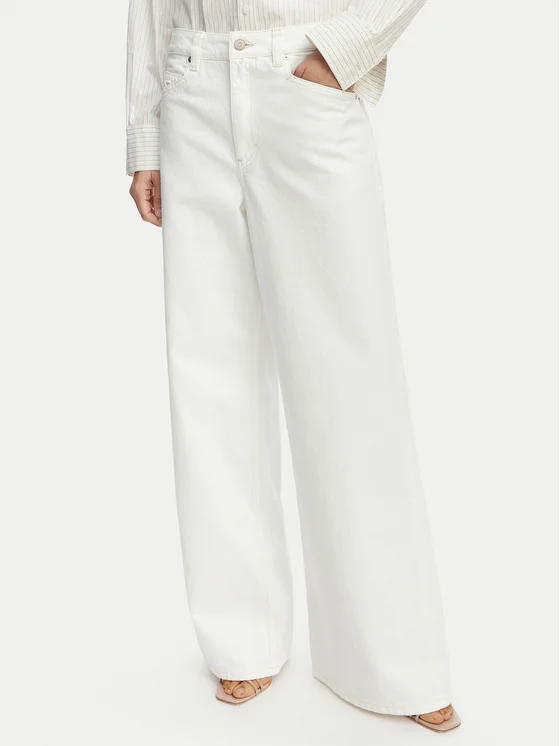 BOSS Jeans hlače C Slouchy MR 2.0 50558723 Bela Relaxed Fit