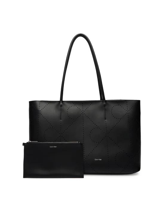 Calvin Klein Ročna torba Emblem Aop Perfor Lthr Tote LV04F3359G Črna
