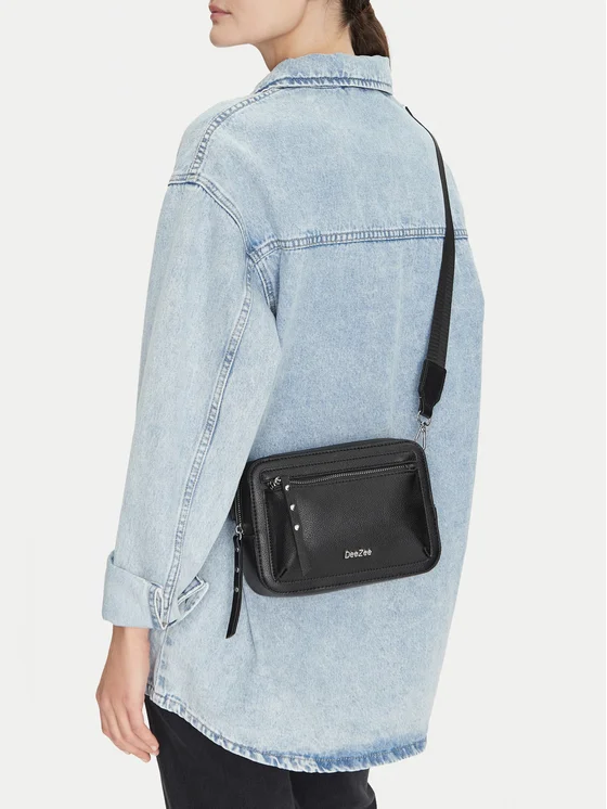 Črna torbica DeeZee združuje eleganco in praktičnost! Izdelana iz visokokakovostnega sintetičnega materiala zagotavlja trpežnost in enostavno vzdrževanje. Njena trda struktura ne poskrbi le za stilski videz, ampak tudi za zaščito tvojih stvari. Z nastavljivo naramnico lahko prilagodiš dolžino torbice svojim potrebam, dodatni snemljivi pašček pa ji doda vsestranskost. Predal, ki se zapira z zadrgo, zagotavlja varnost shranjenih predmetov in ti nudi popolno udobje pri vsakodnevni uporabi. Popolna za vsako priložnost – moraš jo imeti!