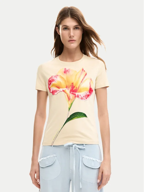 Desigual Majica Estocolmo 26SWTK03 Bež Regular Fit