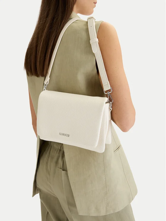 Lasocki torbica za čez ramo v elegantni kremni barvi je idealna izbira za ženske, ki cenijo stil in funkcionalnost. Izdelana iz visokokakovostnega sintetičnega materiala, se ponaša s trdno strukturo, kar zagotavlja njeno trpežnost in estetski videz. Predal, ki se zapira s pokrovom in zaponko, zagotavlja varno shranjevanje tvojih drobnarij. Dodaten, snemljiv pašček omogoča prilagodljivo uporabo torbice glede na tvoje potrebe. Nastavljiva dolžina paščka zagotavlja udobje pri nošenju, kroj torbice pa ji daje brezčasen šarm. To je odličen dodatek, ki bo poudaril vsako modno kombinacijo.