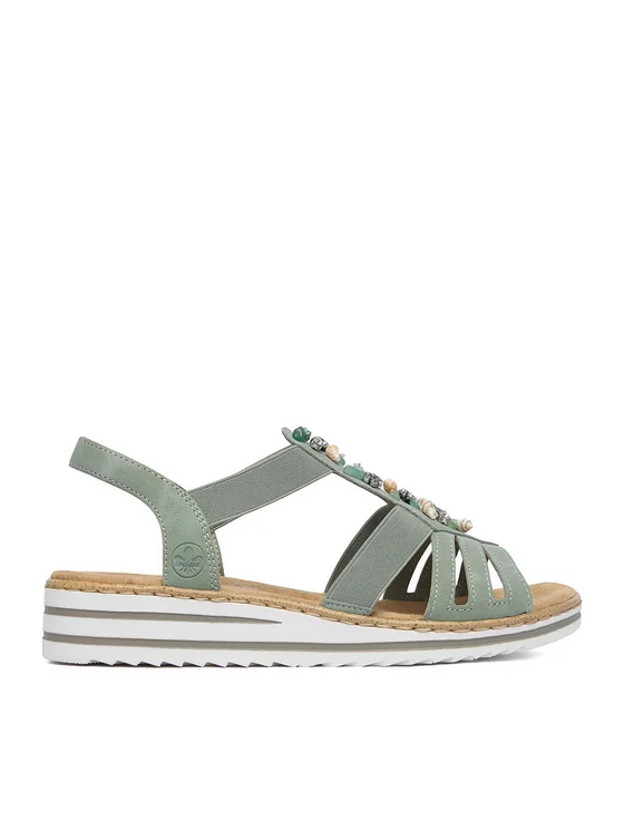 Ženske sandale znamke Rieker so kvintesenca udobja in bleščečega sloga. Zahvaljujoč tehnologiji Rieker Antistress, ti čevlji zagotavljajo udobje tudi pri celodnevnem nošenju, saj zmanjšujejo obremenitev stopal. Njihov edinstven značaj poudarjajo osupljivi okraski v obliki cirkonov in kroglic, ki dodajajo eleganco in jih naredijo za idealno izbiro za poletne slovesnosti ali večerne izhode. Izdelane iz visokokakovostnega sintetičnega materiala so tako trpežne kot tudi enostavne za vzdrževanje. Te sandale Rieker so kombinacija mode in funkcionalnosti, ki si zagotovo zaslužijo mesto v tvoji omari!