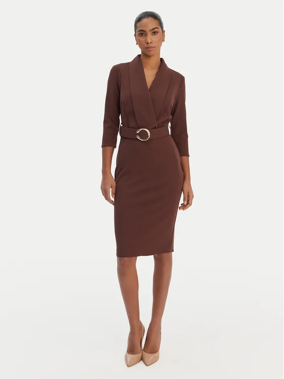 Rinascimento Cocktail obleka CFC0126777003 Rjava Slim Fit