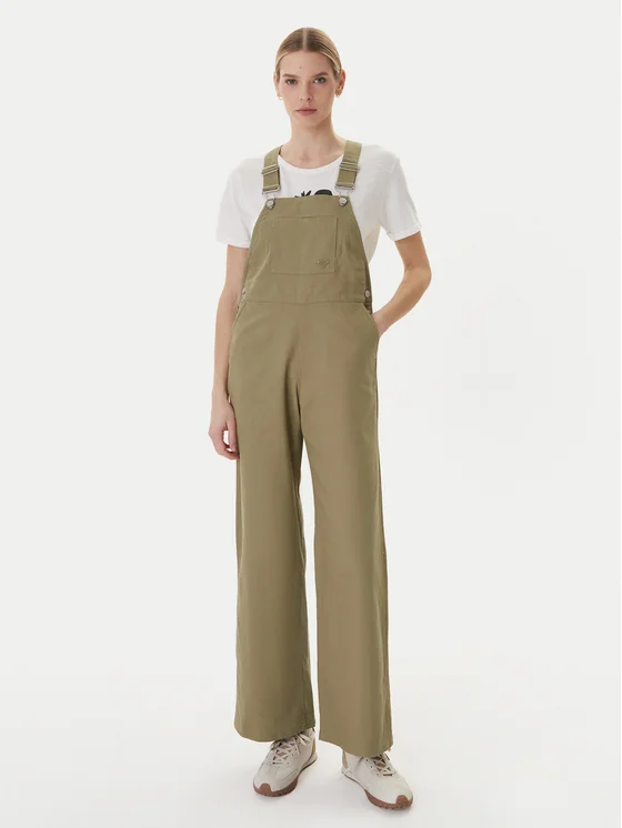 Roxy Jeans hlače z naramnicami Trail Blazer ERJWO03027 Zelena Wide Leg