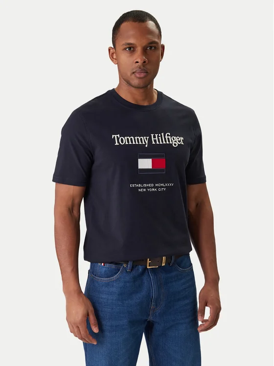 Tommy Hilfiger Majica Embro Flag MW0MW42736 Mornarsko modra Regular Fit