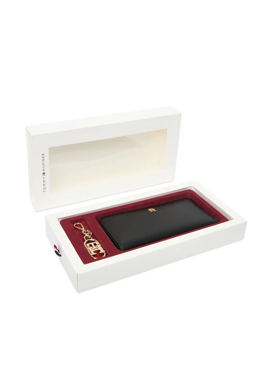 Tommy Hilfiger Set denarnica in obesek za ključe Lgr Za + Charm AW0AW18040 Črna
